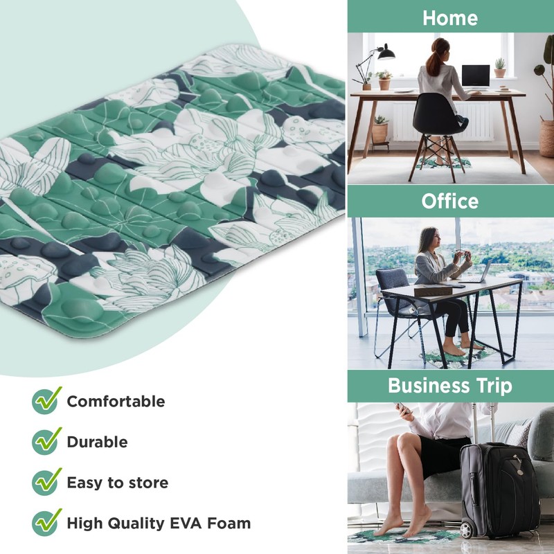 - Durable Comfort for Home, Office, or Travel - Made from high-quality EVA foam, our Foot Massage Pad offers a comfortable and long-lasting solution for soothing tired feet. The lightweight and easy-to-clean material ensures durability for everyday use. Plus, its compact design allows for convenient storage at home, the office, or during business trips, making it your perfect foot care companion.