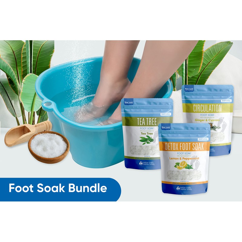 The Epsom Salt "Foot Soak Bundle" from Better Bath Better Body offers two special foot soaks with natural ingredients. Both are excellent for foot care and self-care rituals. Made with USP Grade epsom salt and 100% pure essential oils.