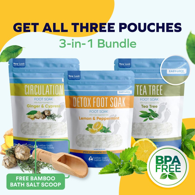 - 3-Pack Epsom Salt Foot Soak Bundle With Scoop: Experience Hotel Spa Pampering At Home