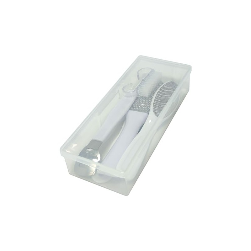 • Including cuticle remover, callus remover, foot file, callus scraper, nail file, V shaped push stick, nail brush and callus shave.