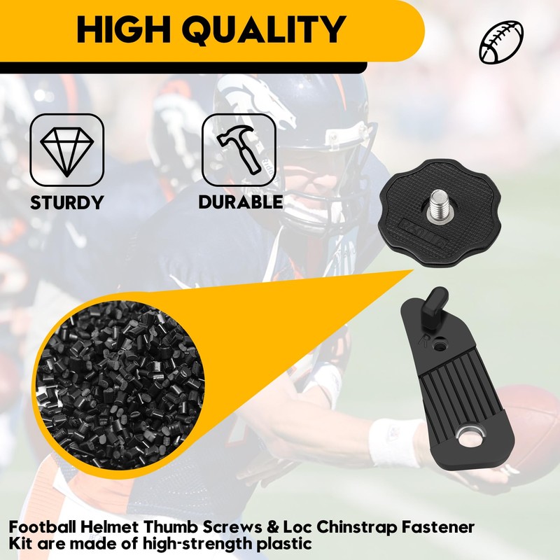 - HIGH QUALITY: Football Helmet Thumb Screws & Loc Chinstrap Fastener Kit are made of high-strength plastic, able to withstand the violent impact brought by the intense game, sturdy and durable