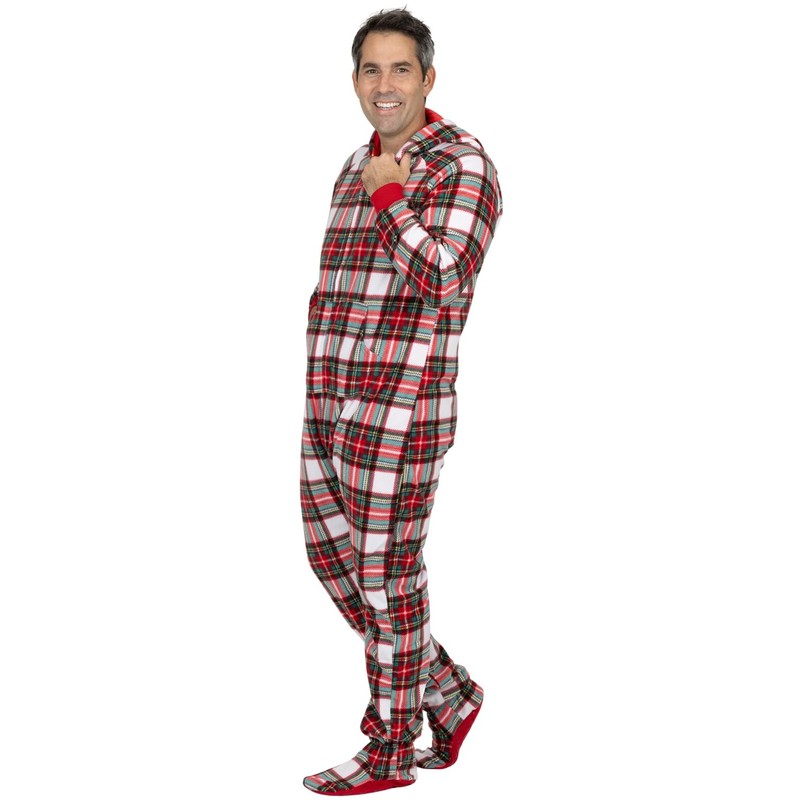 Footed Pajamas Family Matching Festive Plaid Adult Hoodie Fleece One Piece - Adult - Medium (Fits 5'8-5'11")