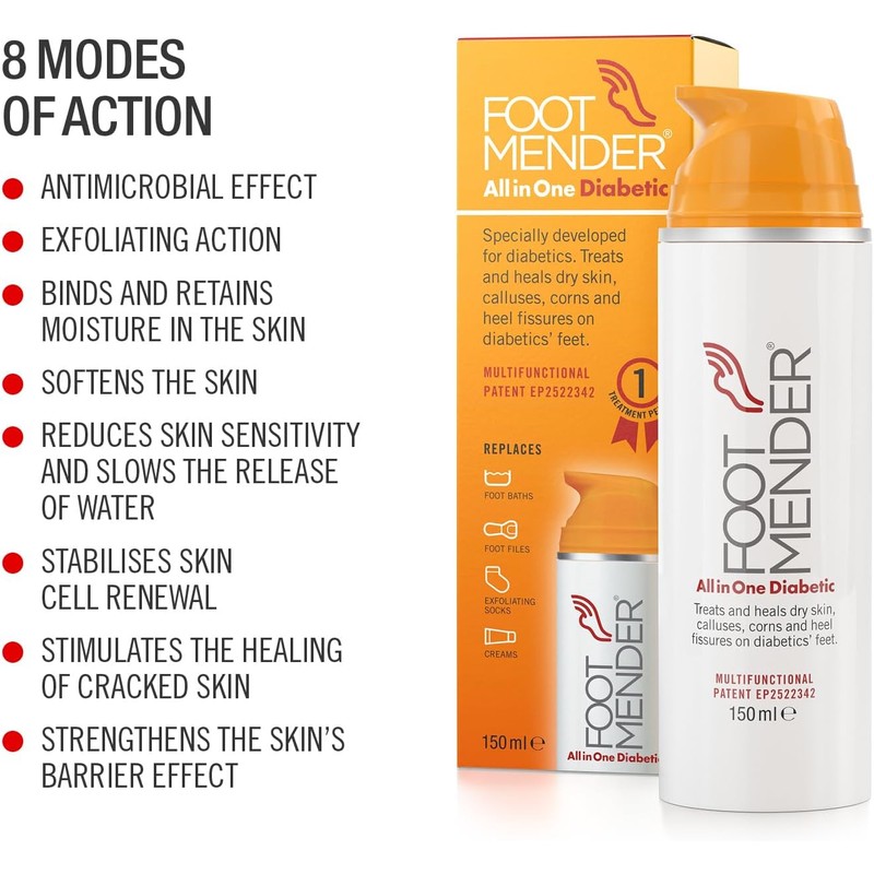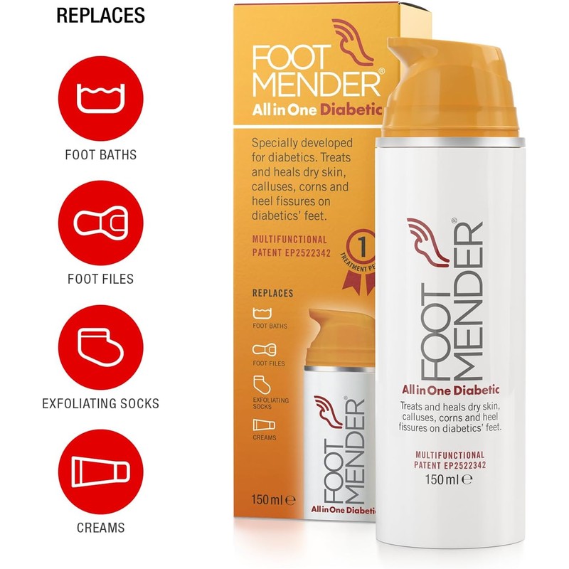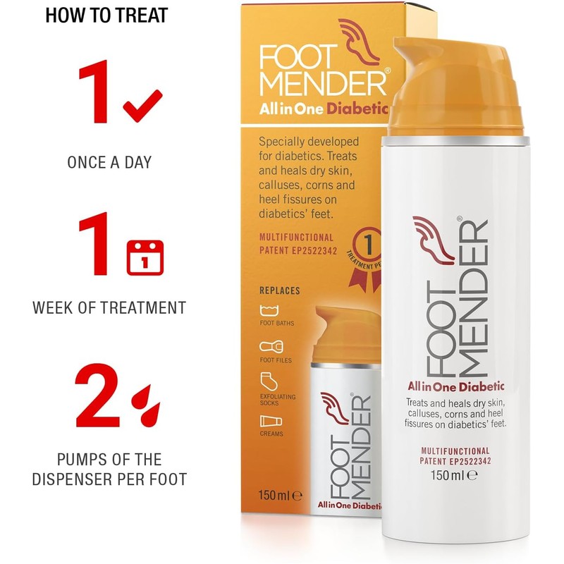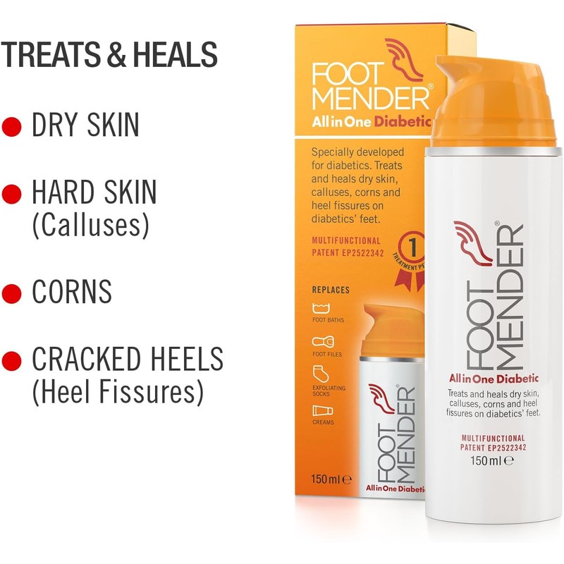 Footmender All in One Diabetic | Medically Proven, Now Available on Prescription | Treat and Heal Your Dry Feet, Hard Skin, Corns and Cracked Heels | Significant Effect After First Treatment | 150 ml