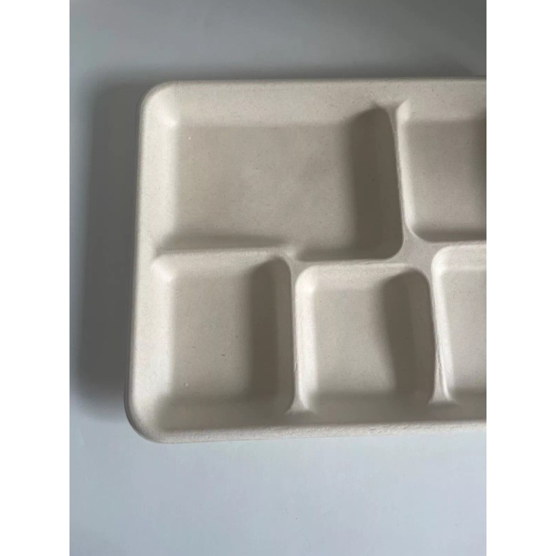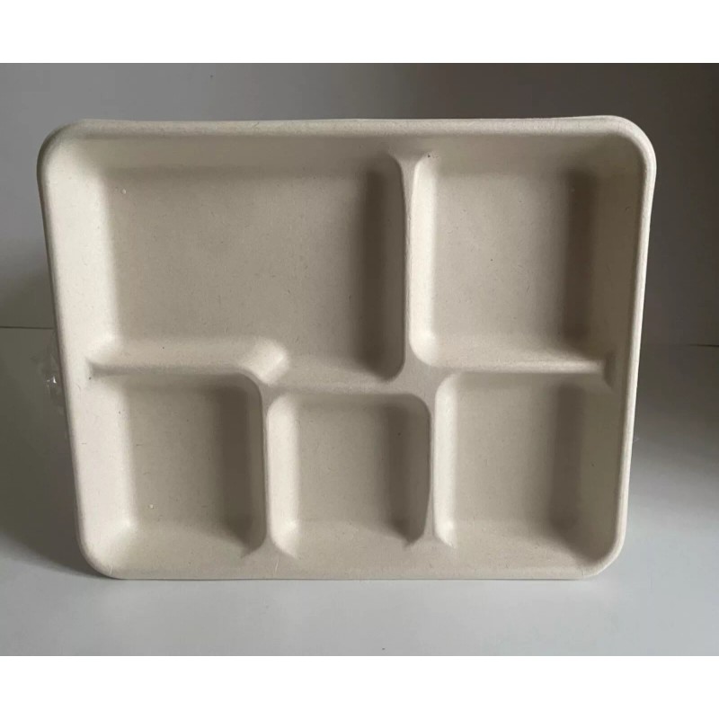 Footprint 100 Count - 5 Compartment Disposable Lunch Tray 10"x8" Eco Friendly Fiber Sturdy