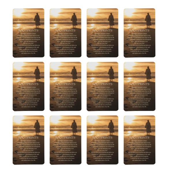 Dicksons gifts offer quality products that are both functional and giftable. (Pack of 12); Card shows a beach scene with footprints and Jesus silhouette; Complete with "Footprints" story. Made of quality and durable cardstock material; Spot clean only in order to maintain the thoughtful design. Prayer card measures approximately 4 x 3 inches; The perfect size to carry with you and serve as your reminder to pray. Perfect as a giftable or self purchase item offering uplifting reminders. Contained in protective packaging; Ready for gifting.