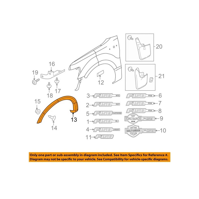 • Superseded Part Number: For, 2009 2010 2011 2012 2013 2014 Ford F150 Pickup, Truck Base FX2 FX4 Harley Davidson King Ranch, Lariat Limited Platinum STX XL XLT 6Cyl 8Cyl V6, V8 3.5L 3.7L 4.2L 4.6L 5.0L 5.4L 6.2L 3.5 3.7 4.2, 4.6 5.0 5.4 6.2 Liter Engine Standard Crew Extend, Cab 2/4-Door Front Fender Flare Wheel Opening Mold, Molding Trim Moulding Arch Paintable Plastic Right, Right Passenger Side 09 10 11 12 13 14, FO1269101, 9L3Z16038APTM, 9L3Z16038A, 9L3Z 16038 A PTM