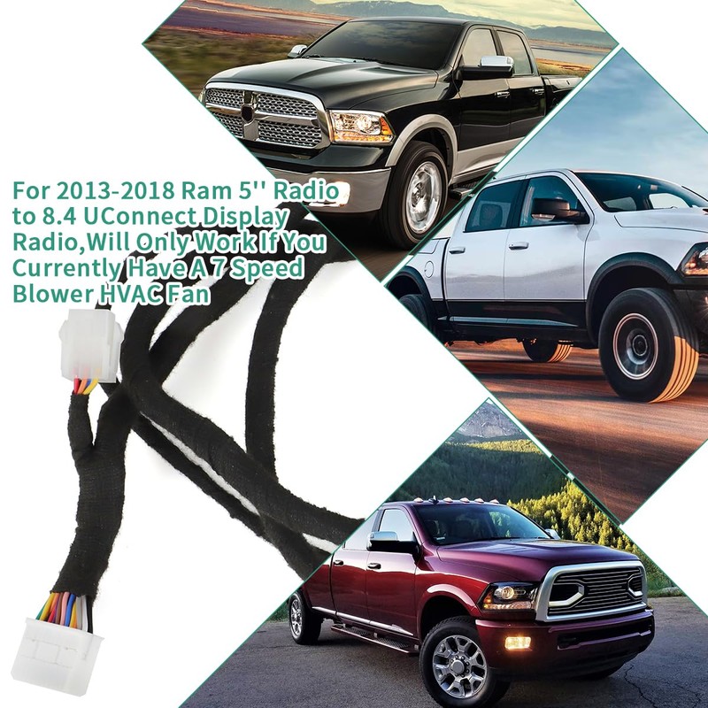 for 2013-2018 Ram Truck 8.4 UConnect Conversion Upgrade Harness 7 Speed Fan HVAC