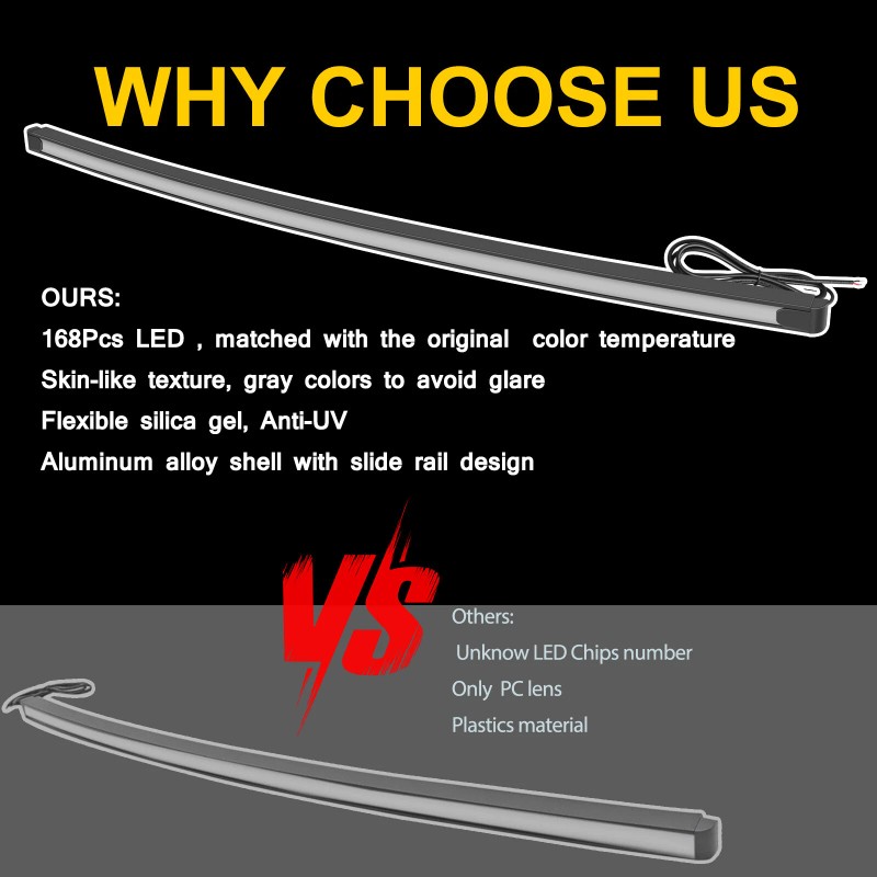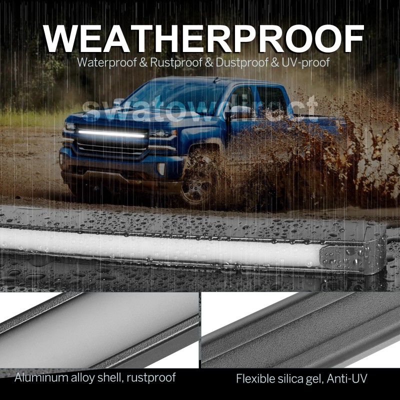 Specifications:Model #:LED Grille Accent Light Bar KitType: Grill Accent LightsHousing Color: BlackLens color: Gray ColorsSize(approx.):37.0*1.0*0.9 inchesMaterial: Aluminum Alloy Shell Base Mount, Flexible silica gel LensChips QTY:168pcs LEDChips type: High-intensity LEDVoltage:12V/24V DCLight color: Smooth 6000K cold white color temperature Lumen: 8400LMColor temperature:6000K cold whitWorking temperature:-30℃ to 85℃Weatherproof: IP68Protection: Weatherproof & Rustproof & Anti-UVCertification: CE, RoHS, FCC, IP68Fit to: 2014-2018 Chevrolet Silverado 1500 (Chevy GM Silverado) Application: As Daytime Running Lights, Side Marker Lights or Position Lamps Connector:Plug&Play Waterproof connector , Original vehicle interfaceAccessory: Plug&Play Wiring Harness Kit & Spring M