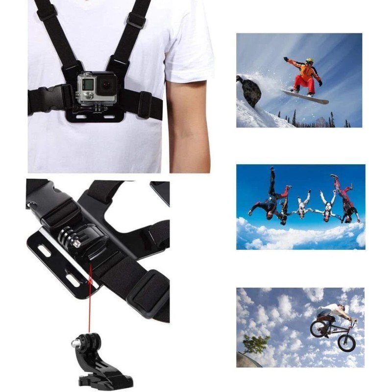 The chest mount harness is fully adjustable to fit all sizes, making it easy to capture immersive video and photo footage from your chest. Perfect for skiing, moutain biking, motocross,paddle sports.