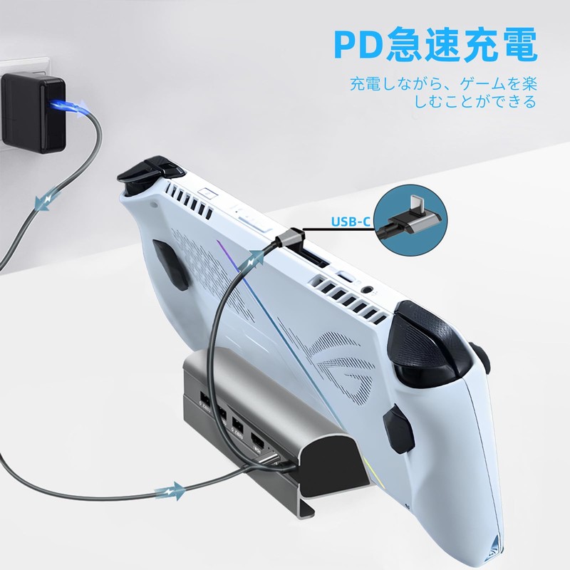 - [Fast Charging] Even when you use it while charging, the PD max 60W charging port supports PD 3.0 rapid charging, and the danger of overheating than the 100W charging mode. The docking station itself has a small energy saving design that allows you to use it while charging your steam deck. (Note: Type C port (female) is only for charging, and does not support data transfer, audio and video output.)