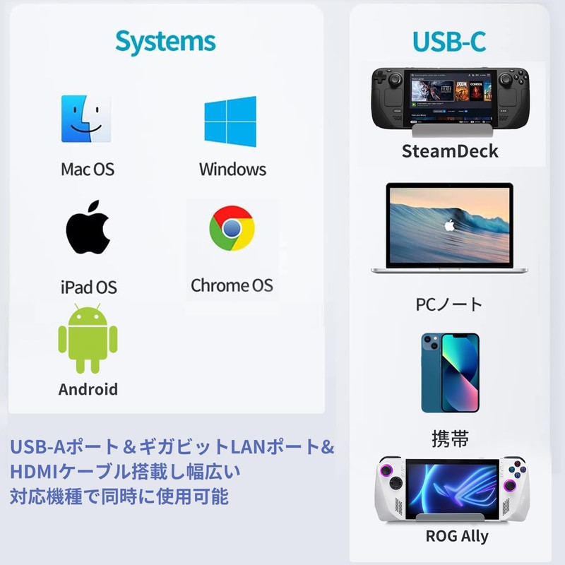 - 【Wide Compatibility】This docking station can be used not only for steam deck, but also for Nintendo Switch with USB-C port, tablets, laptops, smartphones, etc. You don't need to have too many USB hubs on your desk while working, save space on your desktop and improve your work efficiency