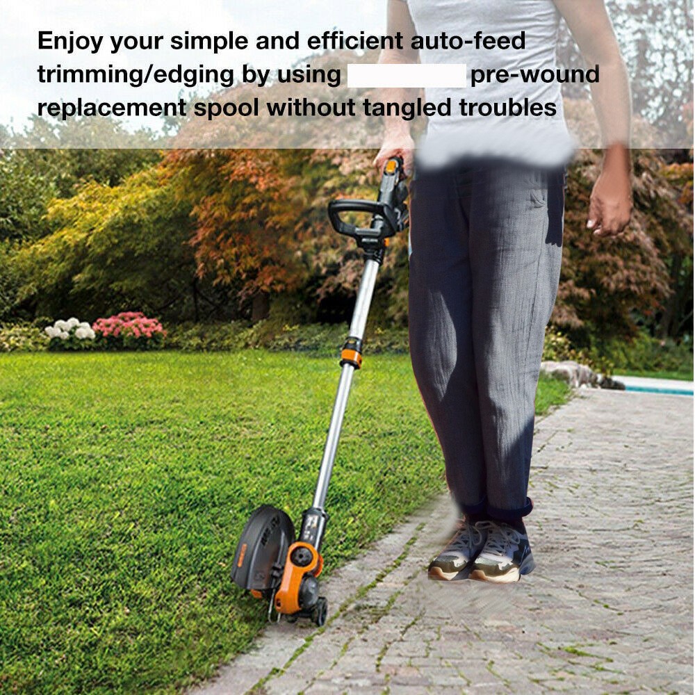 The trimmer replacement spool is compatible with Black+Decker string trimmer and utilizes centrifugal force to feed the trimmer line as it is needed. The auto feed system replacement spool eases the tedious work of hand-winding spools