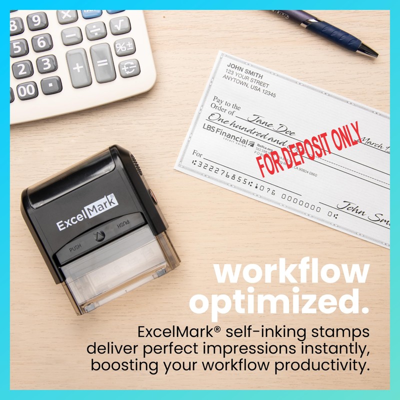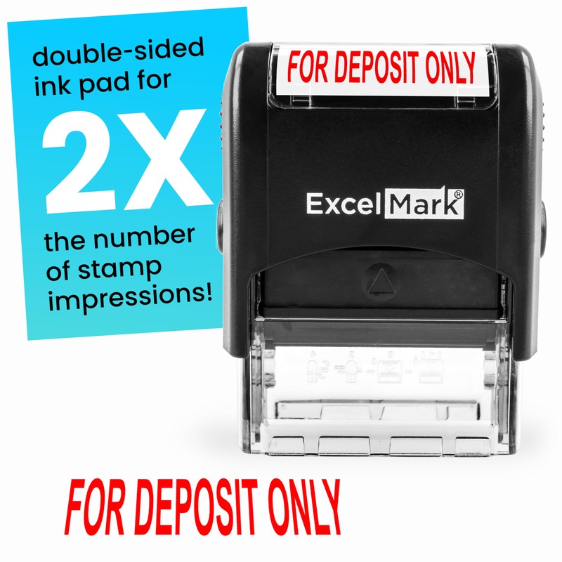 - FOR DEPOSIT ONLY Self Inking Rubber Stamp - Red Ink (42A1539WEB-R)