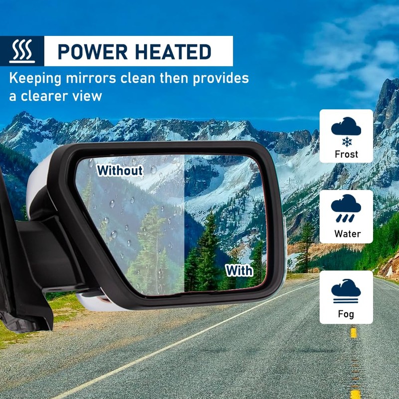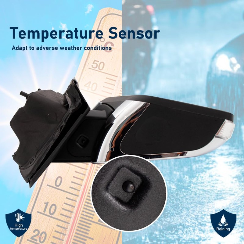For Ford F150 2021-2024 Door Mirror Assembly with Chrome Back Cover Manual Folding with Turn Signal Light Power Heated and Blind Spot Glass Temp Sensor 12 Pins Right Passenger Side