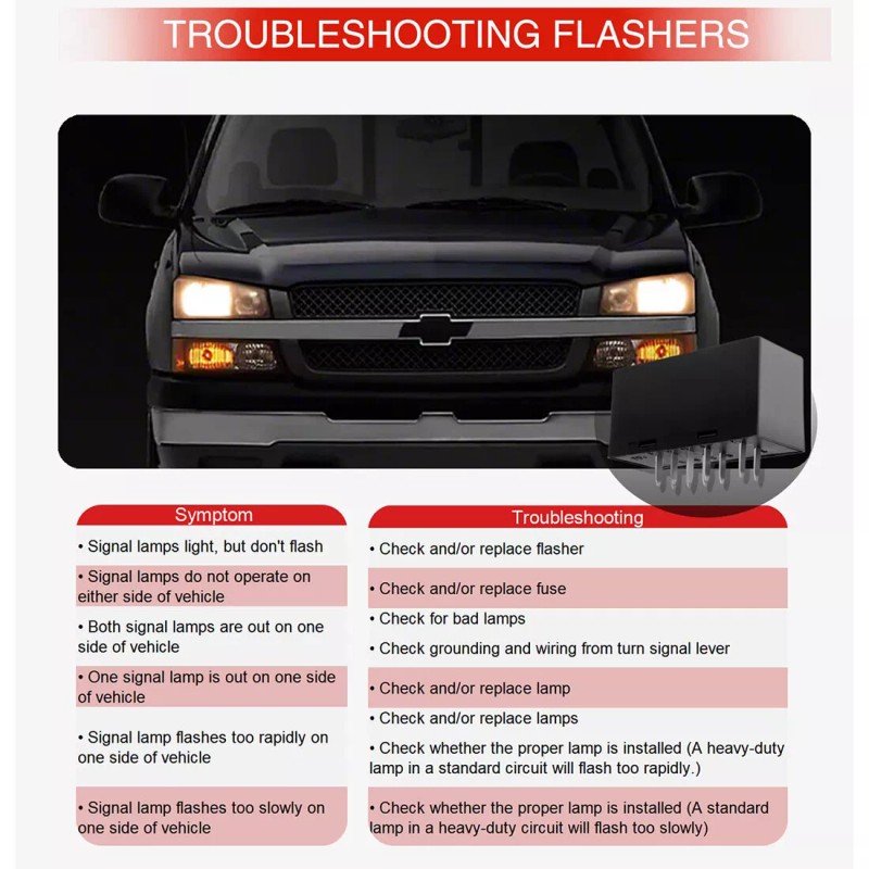 1) Causes the lights on your vehicle to flash in a rhythmic, steady fashion. Fix the problem that your hazard or turn signal lights may stay on solid when turned on, not turn on at all, or flash at an undesirable rate