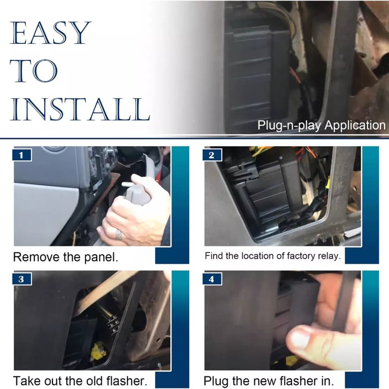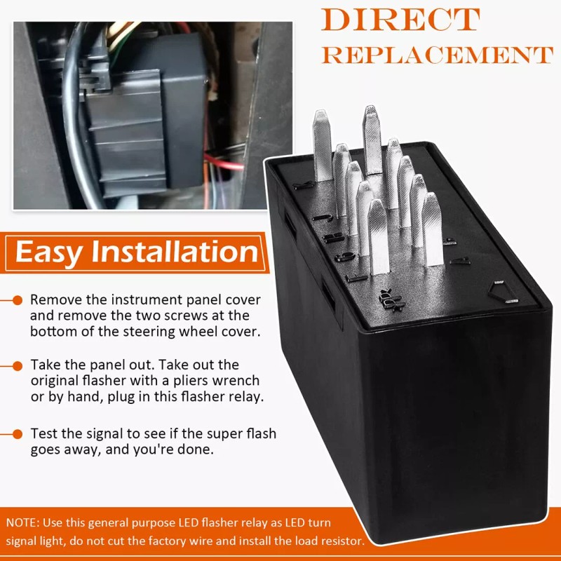 3) Take out the dash cluster cover, remove two screws on the bottom of the steering wheel cover panel. Take the panel out. Use a clamp wrench to take out the original flasher, plug this flasher relay in, test the signals to see if hyper flashing goes away, Then you are done