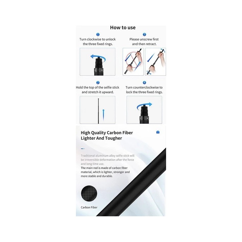 - Type: Carbon Fiber Selfie Stick