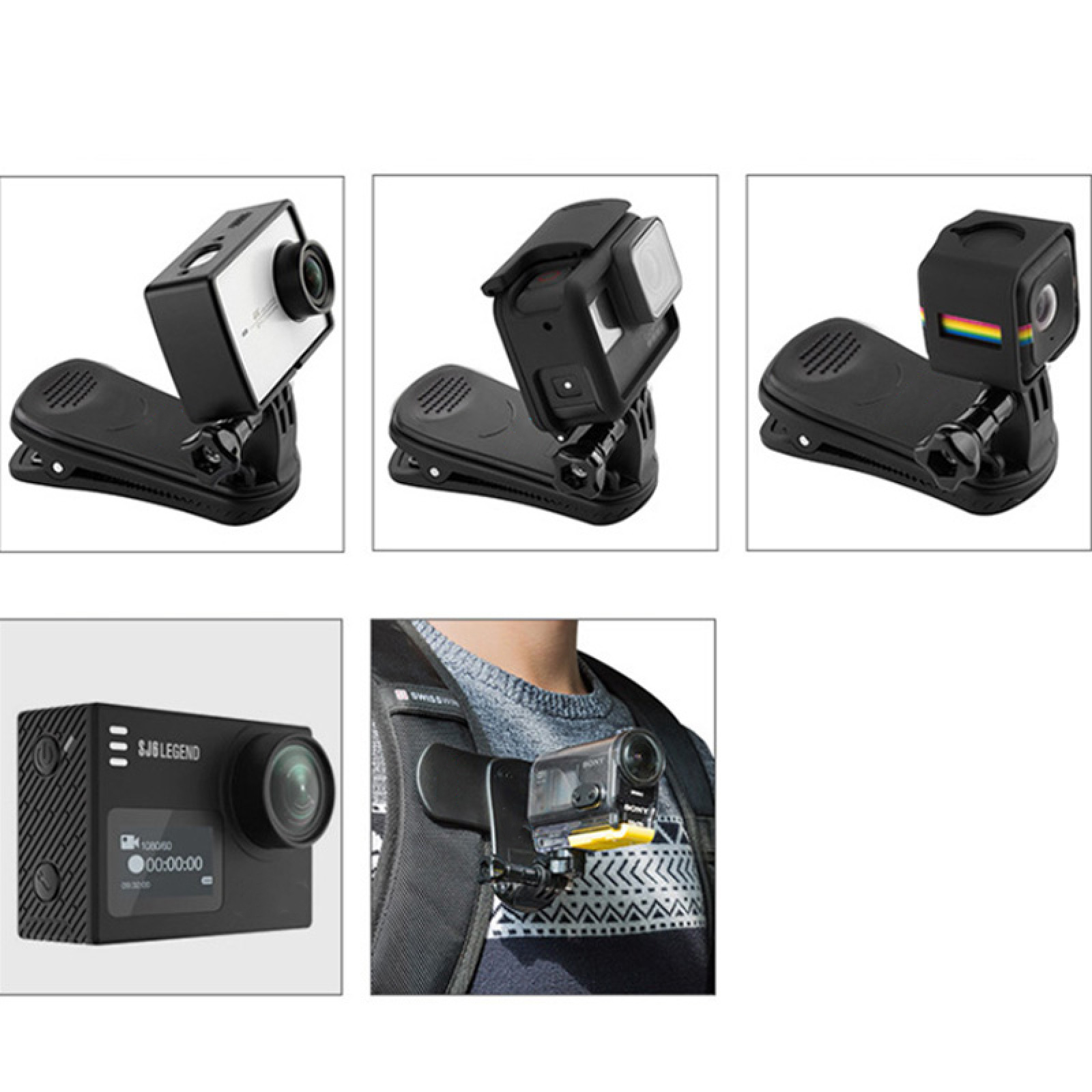 For Gopro Hero6 5 4 3+Black Session Camera Mini 360° Rotary Backpack Clamp Mount for Gopro Hero6 5 4 3+Black Session Camera