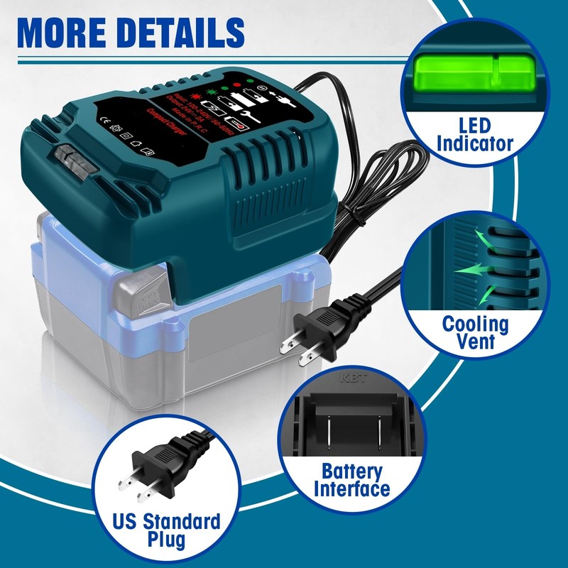 - Safe & Reliable: LED indicator lights communicates battery charge status, built-in protections to protect the battery and charger from overheating, overcharging and short-circuit.