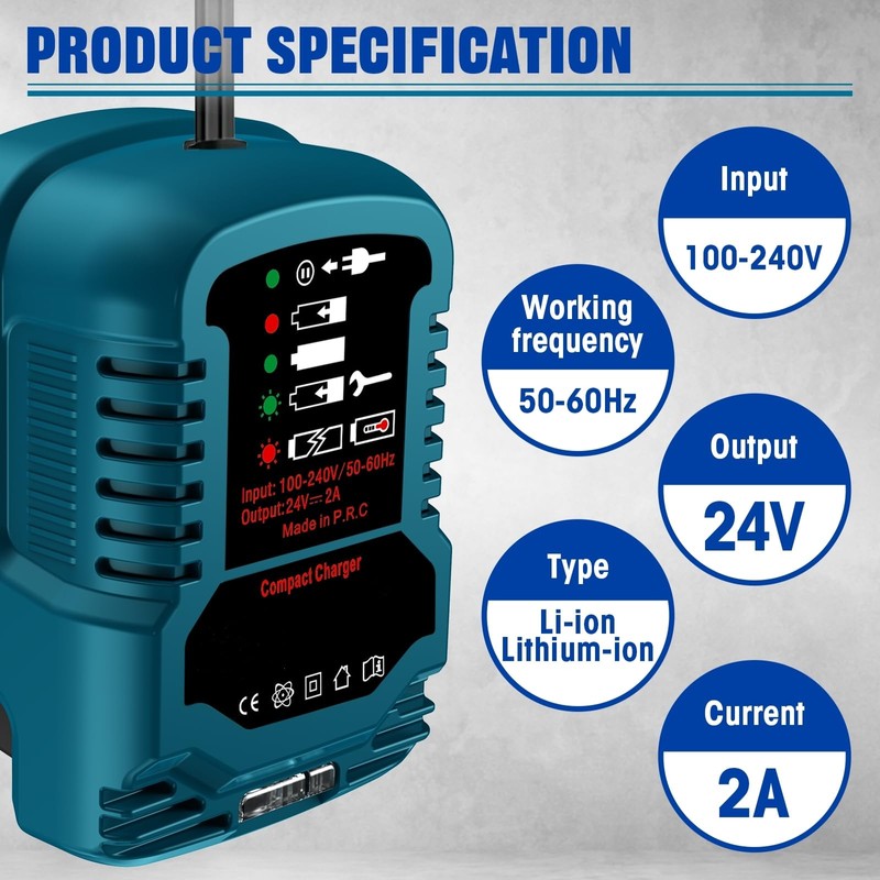 - For Kobalt 24V Battery Charger: AC Input in 100-240V, Output in 18V -- 2A, US standard plug. (❗ Don't fit M12 12V Battery)
