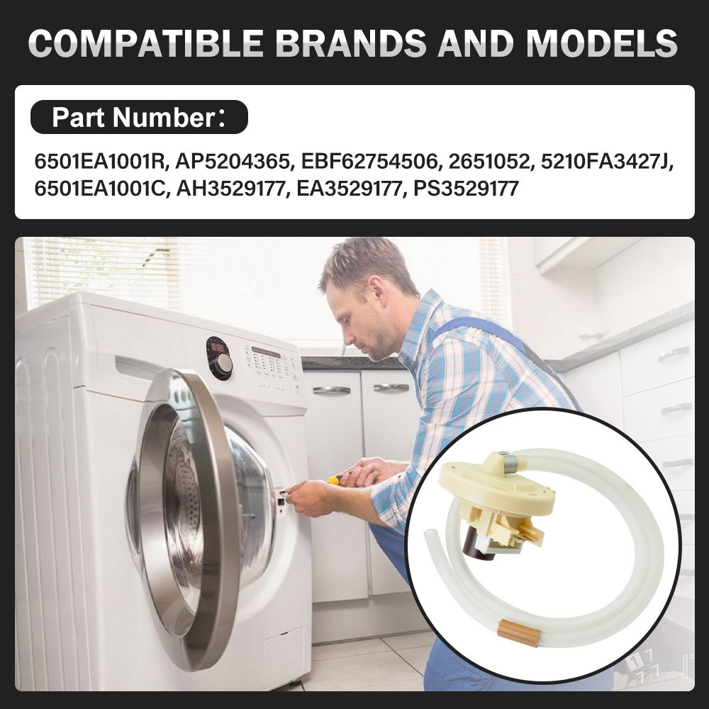 Pressure Switch 6501EA1001R,Engineered with industrial-grade pressure sensors to monitor water levels accurately. Prevents underfilling/overfilling, protects your washer from leaks, and extends appliance lifespan.