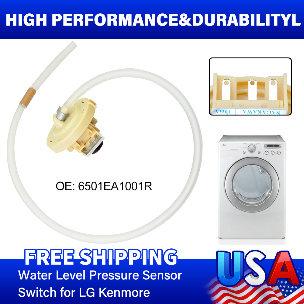 6501EA1001R Washer Water Level Pressure Switch, Direct replacement for LG washer models requiring 6501EA1001R, 6501EA1001C, or AP5204365 pressure switches. Restores proper water level control and resolves common errors like UE (Overflow) or no water filling.