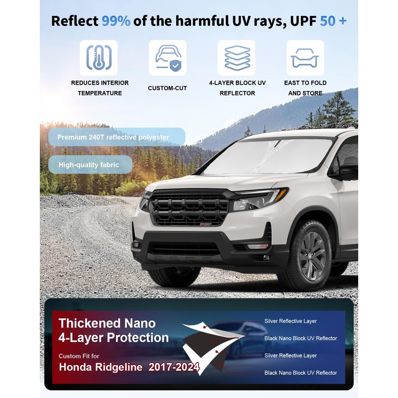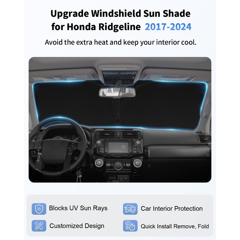 for Ridgeline Car Windshield Sun Shade for 2017-2023 2024 Crew Cab Truck Accessories Front Window Sunshade 2 Layer 240T Windshield Cover Sun Visor Shield Protector Block UV Ray