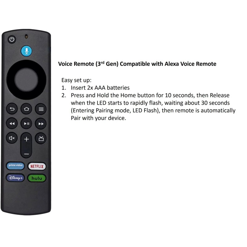 Voice Remote (3rd Gen) Replacement for Smart Stick Remote (User Manual Included, Battery Not Included)