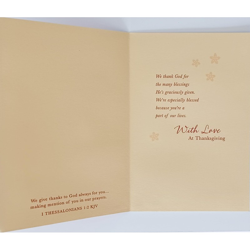 - Inside: We thank God for the many blessings He's graciously given. We're especially blessed because you're a part of our lives. With Love At Thanksgiving