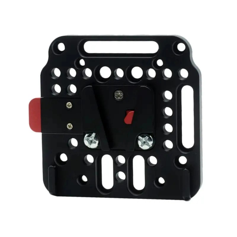 This V-mount battery plate is designed to securely mount professional V-lock batteries onto your DSLR or cinema camera rig. Made from CNC-machined aviation aluminum, it combines strength, precision, and a lightweight design—ideal for on-set filming and mobile camera setups.