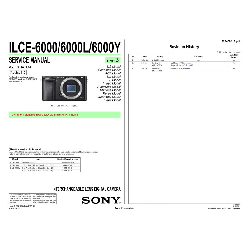 SONY A6000 ILCE-6000/6000L/6000Y Camera Service Repair Manual PDF NO WATERMARK