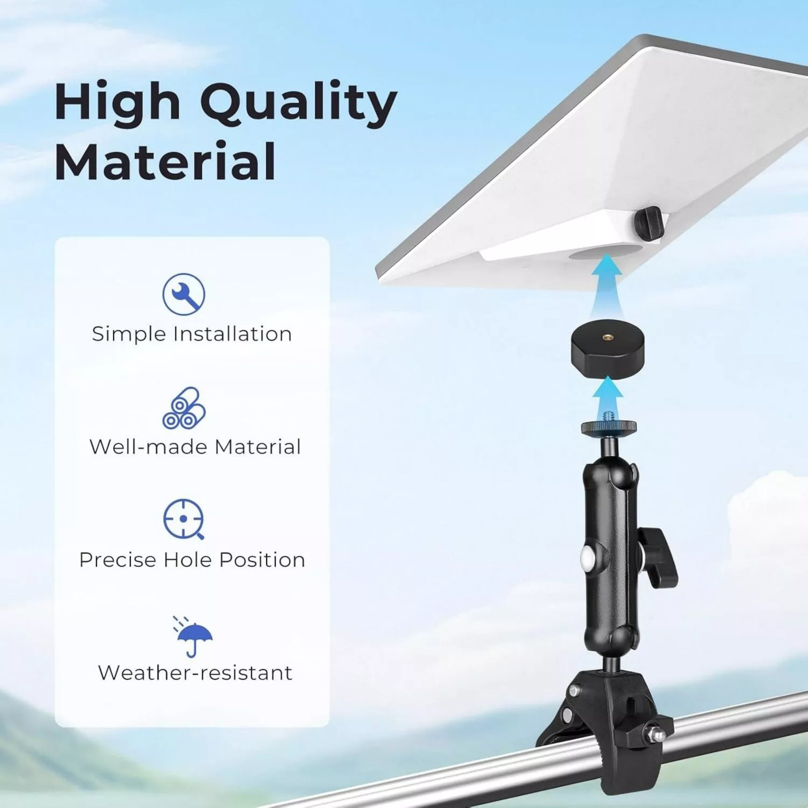 4. Easy To Install: This For Starlink Mini RV Mount Is Easy To Install With No Screws Or Wrench Needed. Simply Insert The For Starlink Mini Pipe Adapter Into The Slot. Then Just Need To Attach To Any Existing Pole And Adjust To Suitable Direction To Finish Installation.