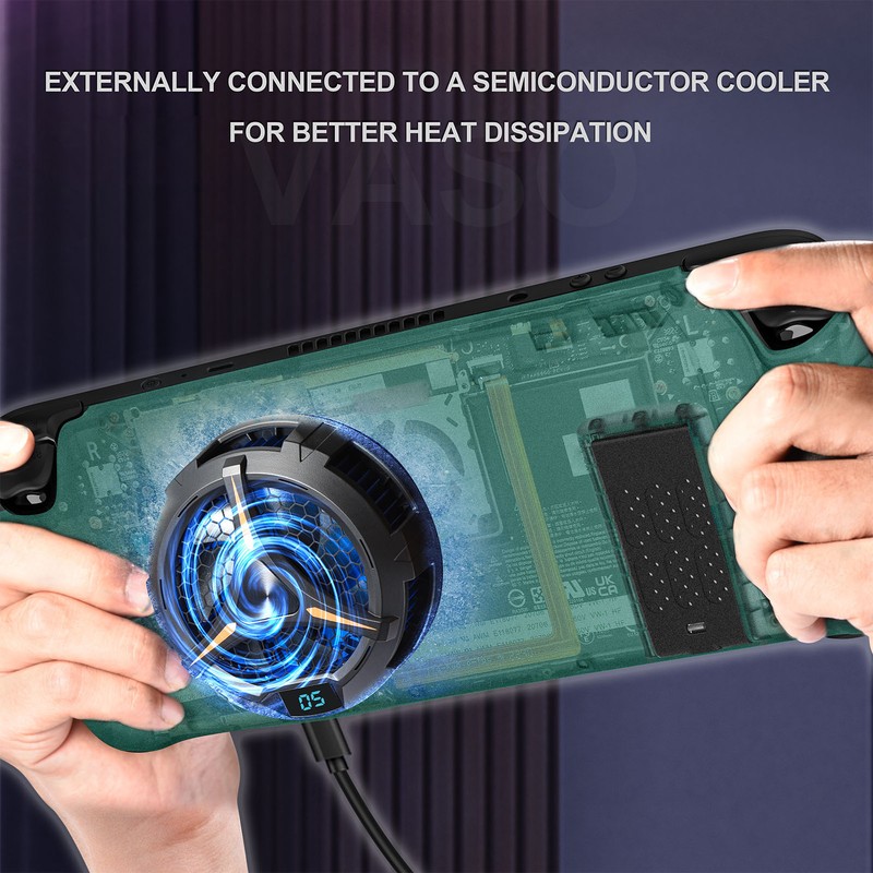 1、HEAT DISSIPATION: Game console replacement shell case utilizes sheet metal cooling and thermally conductive silicone grease designed to help you cool for Steam Deck during operation. 2、SECURE TO USE: Temperatures have been measured to drop 5‑20 degrees during high load operation. No more worrying about the Steam Deck overheating and interfering with your game play and damaging your device. 3、FREE YOUR HANDS: for Steam Deck back plate provides a bracket to hold the product in place, and the bracket supports two levels of adjustment, freeing up your hands. You can put the device on the table to start the game. 4、BUILT IN POWERFUL MAGNET: For steam deck replacement shell case built in strong magnet, so that you can connect an external semiconductor cooler for better heat dissipation. 5、EASY TO DISASSEMBLE: Comes with 1 x replaceable backplate, 1 x screwdriver, 1 x auxiliary removal tool, 1 x thermal silicon grease (already attached to the backplate), 10 x screws, 10 x anti static finger gloves.