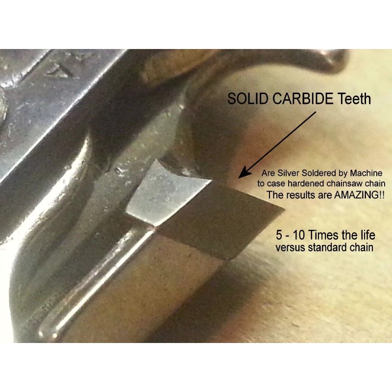 PlasmDyn© - SOLID Carbide Tip Chainsaw Chain 36RS - 84 - 3/8" pitch - 0.050 gauge - 84 Drive Links Fits bars using a 3/8" x 0.050" x 84 Link Chain: Note: some saws have 325 pitch or 0.063" gauge chain so make sure this is the correct pitch - if this chain will not fit or you need help please contact us - WE HAVE YOUR CHAIN All Sizes Available - contact us for details |