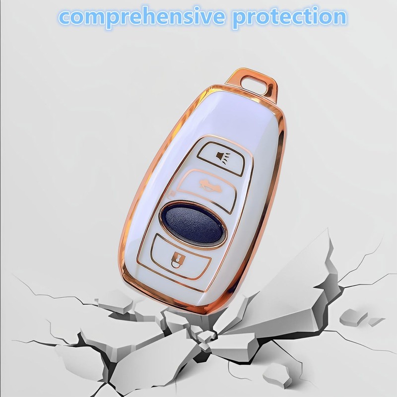 for Subaru Key fob Cover with Keychain,White Soft TPU Protection Key Case Shell,4 Buttons for Forester Outback BRZ Legacy Ascent CrossTrek WRX Impreza STI Smart Remote Key (For Subaru A)