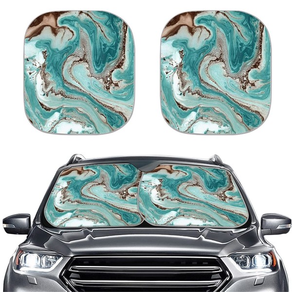 Forchrinse Teal Marble Print Car Windshield Sun Shade Foldable Auto Front Window Sunshade for Men Women,Block UV Ray Sun Visor Protector(Universal Fit)