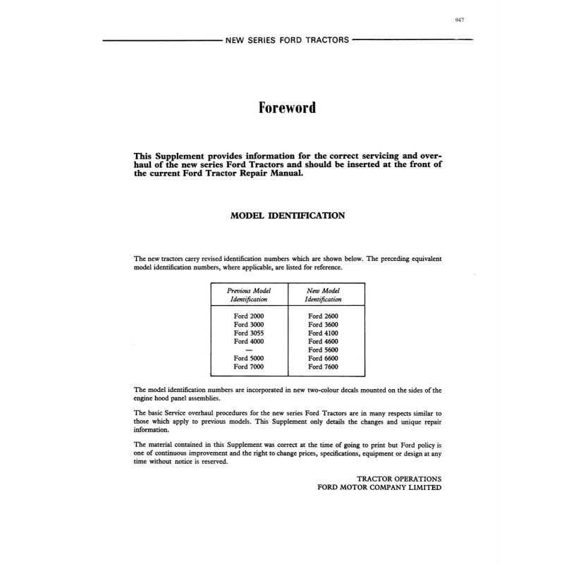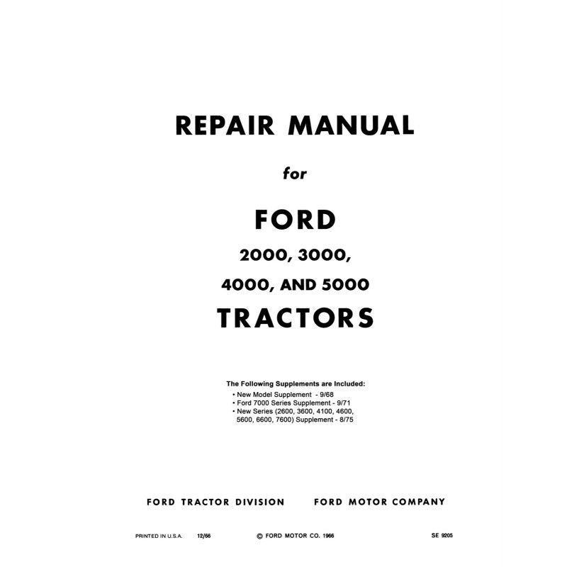 This Ford Tractor Service Manual Series 2000-7000 1965-1975 is published by Ford Motor Company.