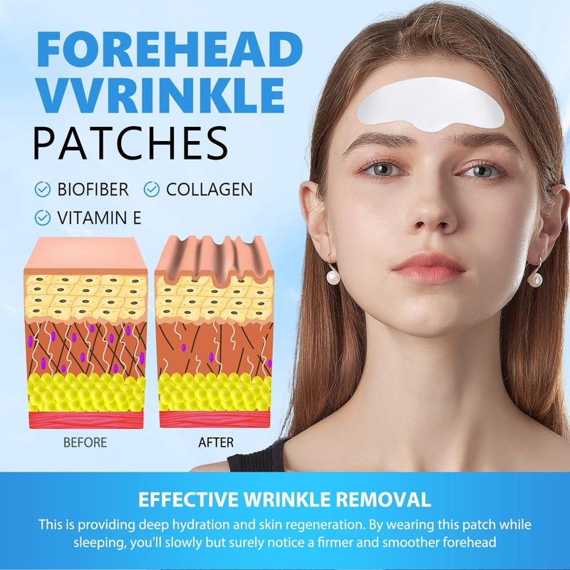 • Bio-fber Forehead Wrinkle Patches : Engineered to combat forehead wrinkles triggered by stress, aging, and collagen loss, our patches apply a gentle tension to your skin upon adhesion, effectively smoothing out lines. Rich in hydrating essences, they stimulate collagen regeneration and bolster skin elasticity for a more youthful appearance.