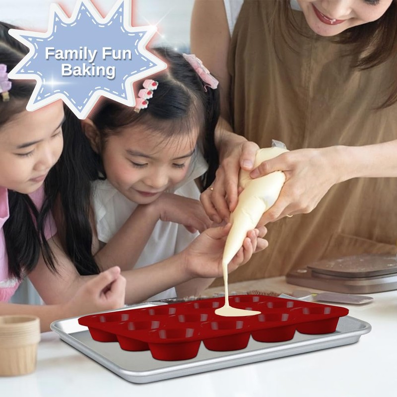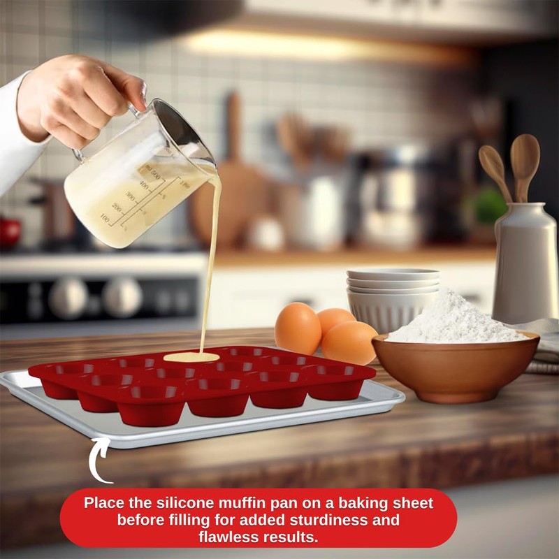 - SUPER FLEXIBLE FOR EASY RELEASE: Say goodbye to stubborn sticking with our silicone cupcake molds. Made from flexible silicone, it effortlessly releases your baked masterpieces, thanks to its non-stick surface. TIP: As this silicone muffin pan is flexible, we suggest putting this on a baking sheet before filling for added sturdiness and flawless results.