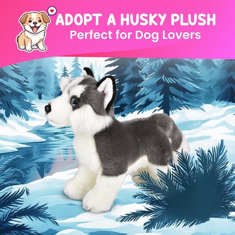 - PERFECT FOR IMAGINATIVE PLAY: This Husky plush dog offers all the love and companionship of a real pet without the responsibility of owning one. It's great for imaginative play, inspiring kids to create their own pet stories and adventures.