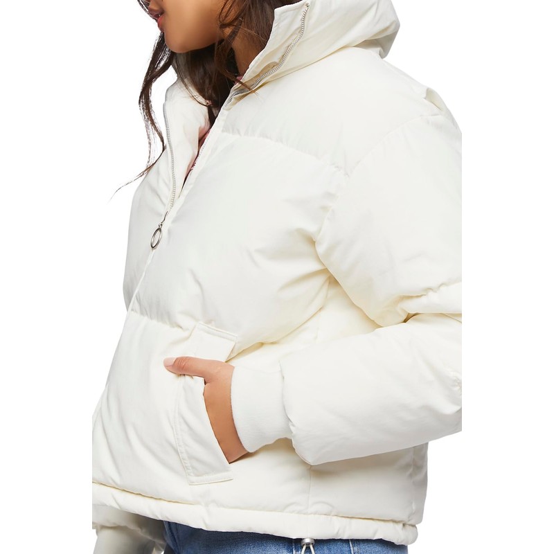 Forever 21 Women's Quilted Puffer Jacket, Cream, Small