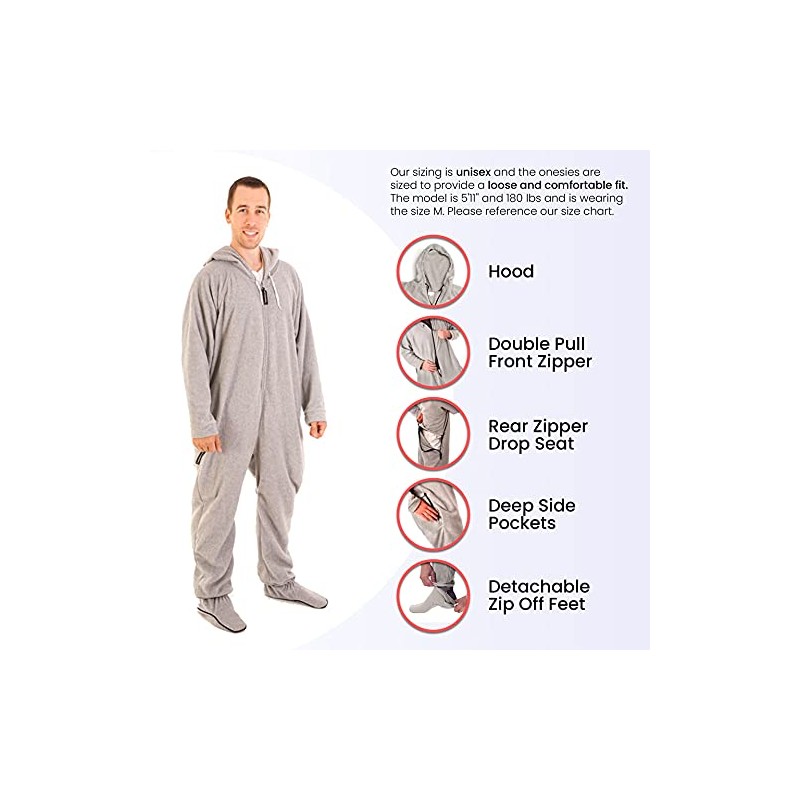 - ZIPPER DETACHABLE FEET AND REAR ZIPPER DROP SEAT - Our onesies feature a hidden zipper tract that allow users to remove or re-attach the feet as desired thus offering the versatility of both a footed and non-footed pajama. This also comes equipped with a concealed, rear zipper drop seat is conveniently located on the back side of the onesie, so you never have to take it off, even to use the restroom.
