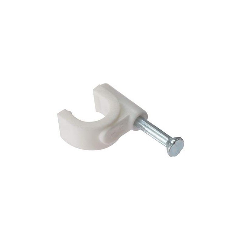 ForgeFix Cable Clips - Round | 7-8mm | White Plastic Clip, Zinc Plated Nail | Box 100