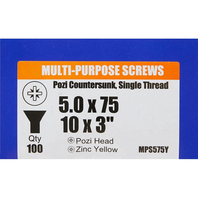 ForgeFix Multi-Purpose Single Thread Screws | 5.0 x 75mm | Zinc Yellow Passivated | Box 100