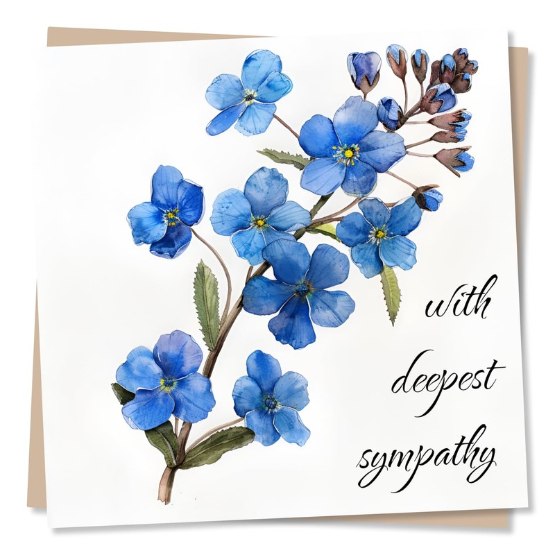 Forget-Me-Not Flower Sympathy Card - With Deepest Sympathy - Condolence Card