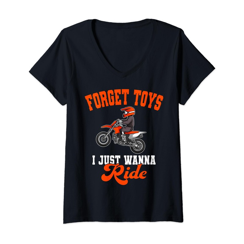 Forget Toys I Just Wanna Ride Motocross Rider Dirt Bike V-Neck T-Shirt