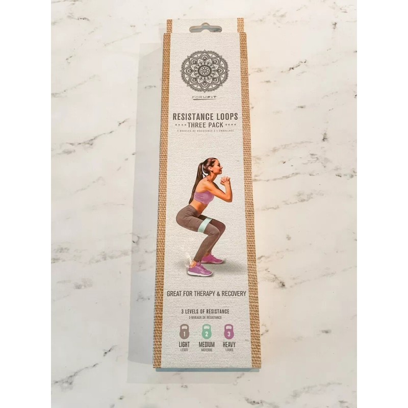 Brand/ Company: Formfit Size: 3 Pack Resistance Loop Band Set Condition of Item: New Additional Item Notes: Three Weight Levels: Light 10-15lbs; Medium 20-25lbs; Heavy 30-35lbs