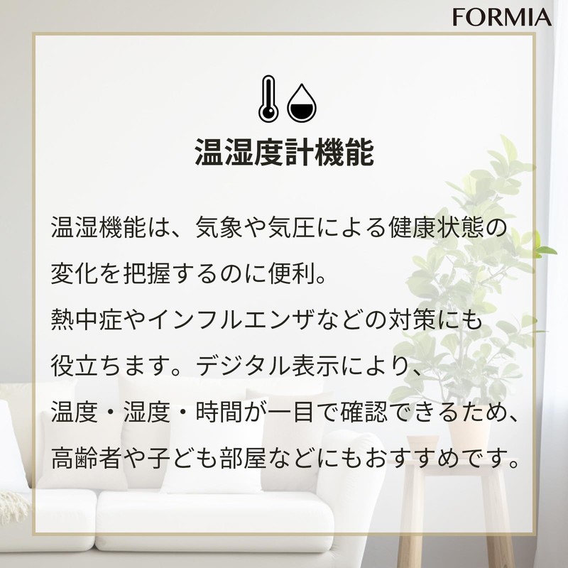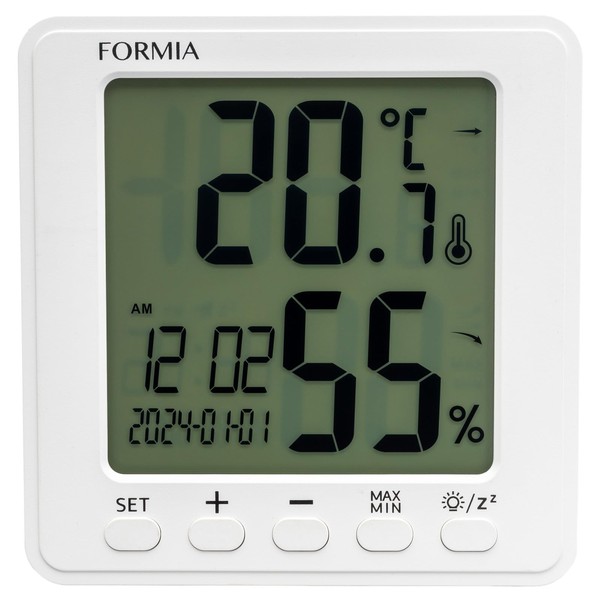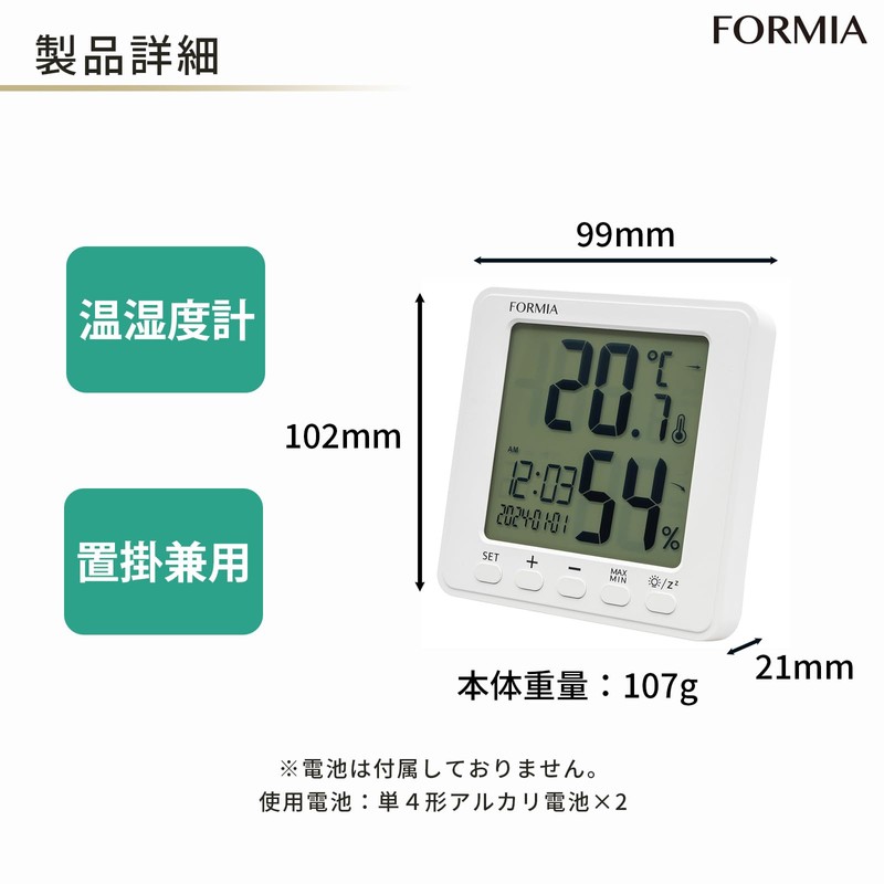 Formia HO-004 Thermometer/Hygrometer, Table Clock, Tabletop, Wakeup, Thermometer, Hygrometer, Backlight Function, Date and Time Signal, Stand, Hanging, Digital, Hodogaya Electronics Sales, White