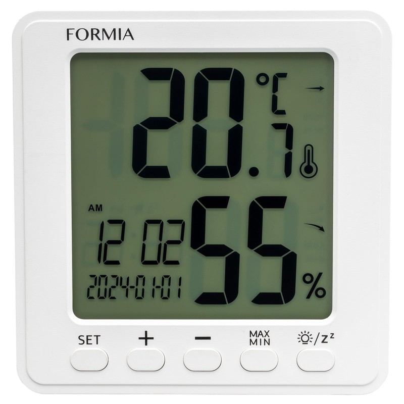 Formia HO-004 Thermometer/Hygrometer, Table Clock, Tabletop, Wakeup, Thermome...