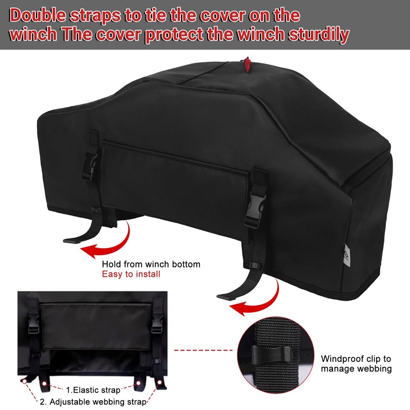 - 【Complete Weather Protection】Shields your winch from rain, snow, dust, and harmful UV rays that can damage components. The waterproof construction keeps internal mechanisms dry while the front flap allows drum access without removing the cover.